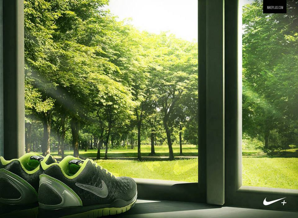 این کفشهای ورزشی مثل یک گلدان در مقابل پنجره قرار گرفته و از نور خورشید انرژی می گیرند. رنگ سبزی که هم در منظره پشت پنجره و هم در رنگبندی کفشهاست، فضای بیرون و درون خانه را به هم مرتبط ساخته، انگار کفشها و طبیعت از یک جنسند. شاید طراح می خواسته این پیام را هم برساند که این کفشها از مواد طبیعی ساخته شده یا دوستدارِ محیط زیستند. جزئیاتی مثل انعکاس نور و تصویر کم رنگ کفشها بر روی شیشه، فضای آگهی را زیبا و پر احساس کرده اند.