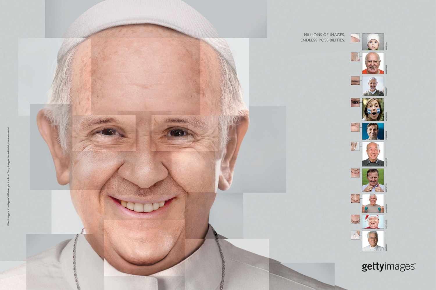 دنیای تبلیغات- سمانه پورمحمد- این کمپین ۲۰۱۶ از getty images است که حالا عکس های مختلف و با کیفیتش از مراجع عکس شده و واتر مارک بزرگ و جذابش هم از المان های بارزش است. getty images با استفاده از کولاژ تصاویر پرتزه هایش، چهره افراد مشهور را در این کمپین زیبا خلق کرده است. پوستر ها و تصاویرش را ببینید