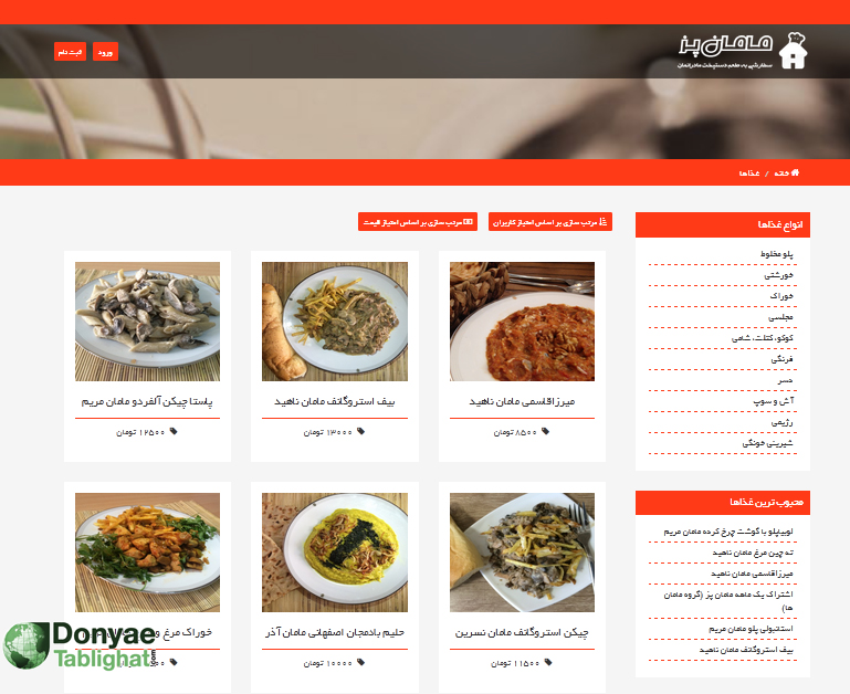 سایت ساده و تر تمیزی که شماره ات را میگیرد و می گوید دلت میخواهد کدام مامان برایت غذا بپزد.